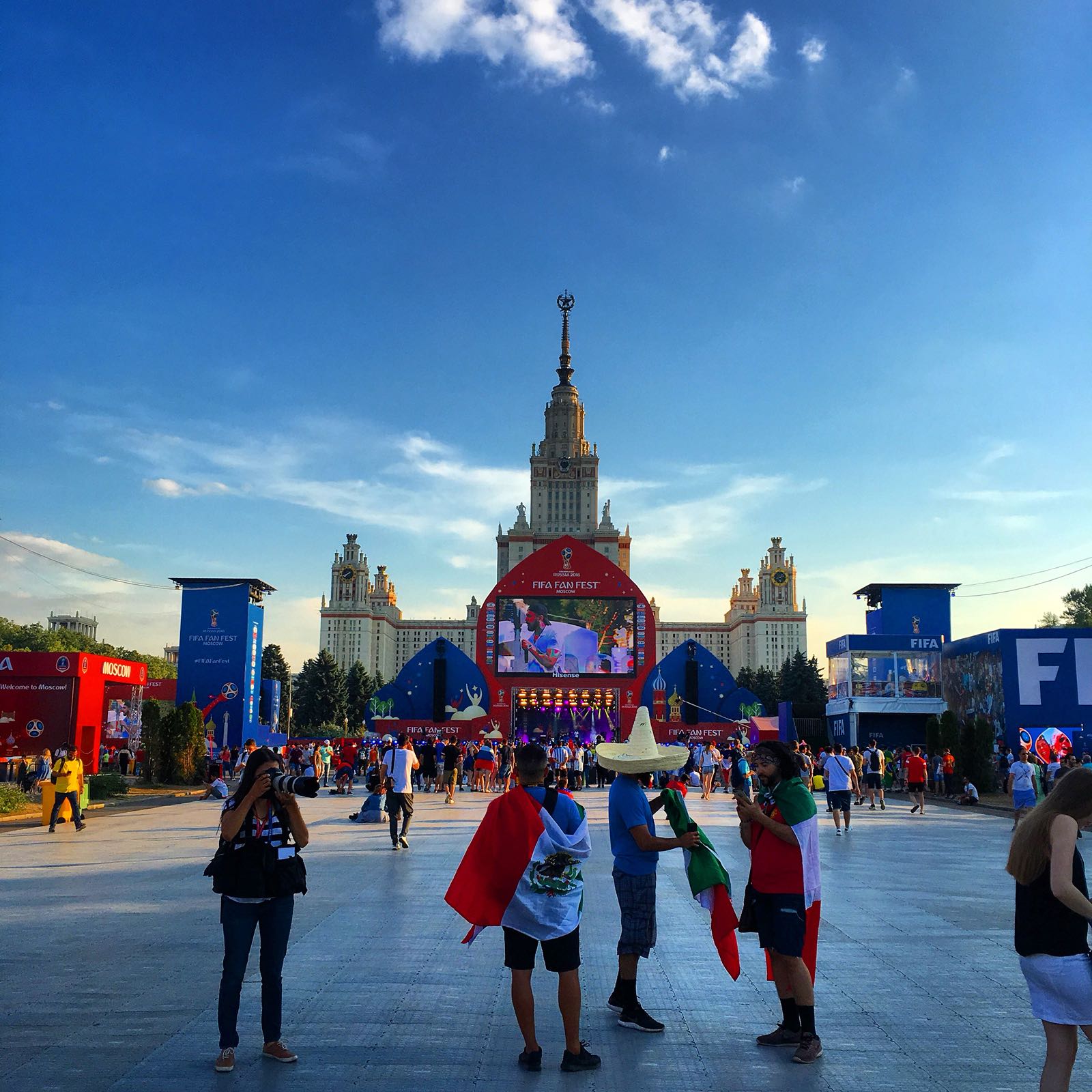 A hotbed of football fandom, the FIFA Fanfest in Moscow sits in front of the stunning State University building.