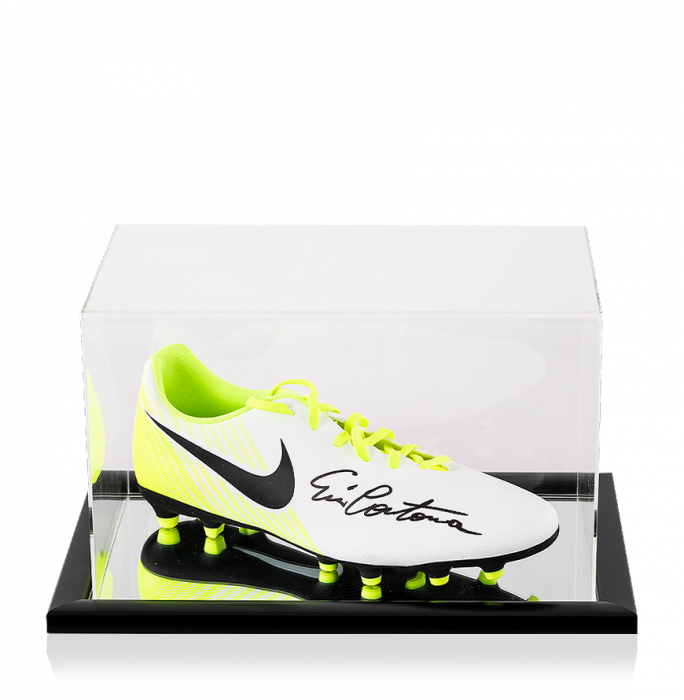 Eric Cantona Signed White and Green Nike Boot In Acrylic Case
