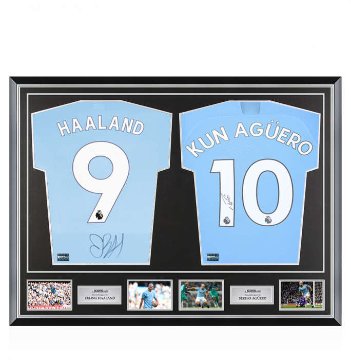 Erling Haaland & Sergio Aguero Signed Manchester City Home Shirts In Classic Dual Frame
