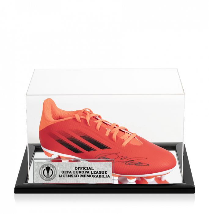 Lukas Podolski Official UEFA Europa League Signed Red Adidas X.4 Boot In Acrylic Case
