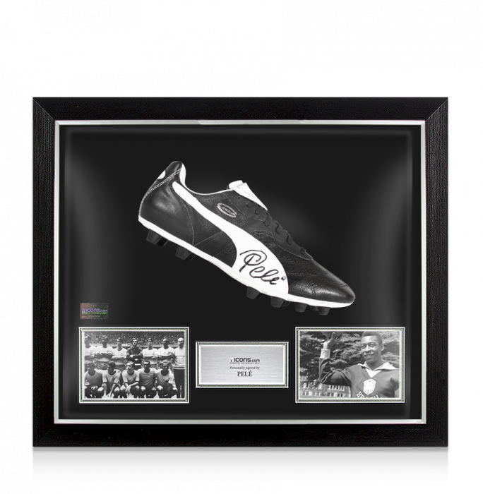 Pele Signed Black Puma Liga Boot In Bubble Frame: Option 1