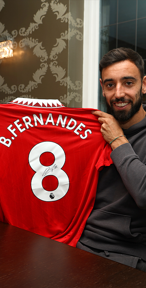 Shop this full collection of authentic signed memorabilia from Manchester United’s midfield maestro, Bruno Fernandes.