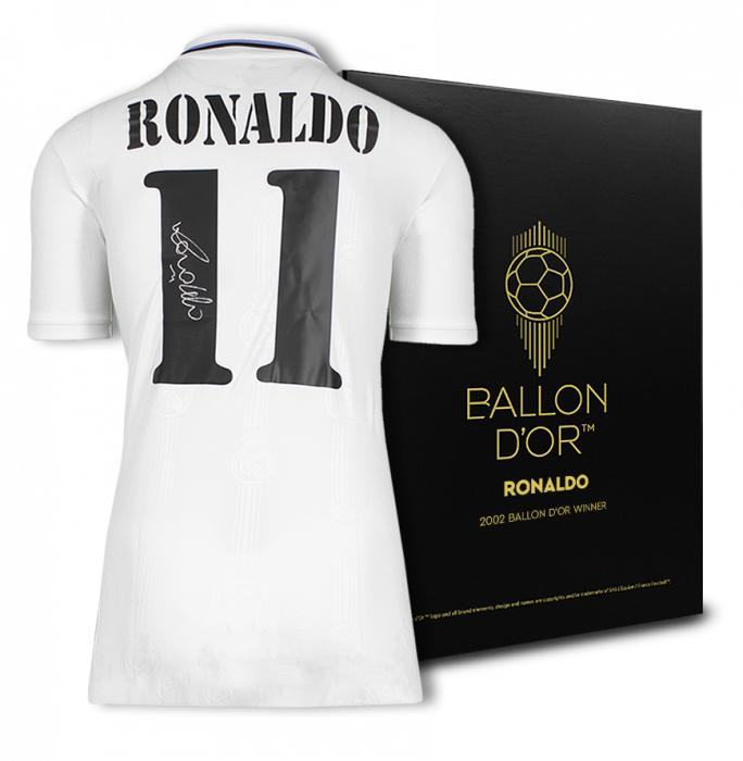 Ronaldo Official Ballon d'Or™ Back Signed Modern Real Madrid Home Shirt With Fan Style Numbers: 2002 Winner's Pack