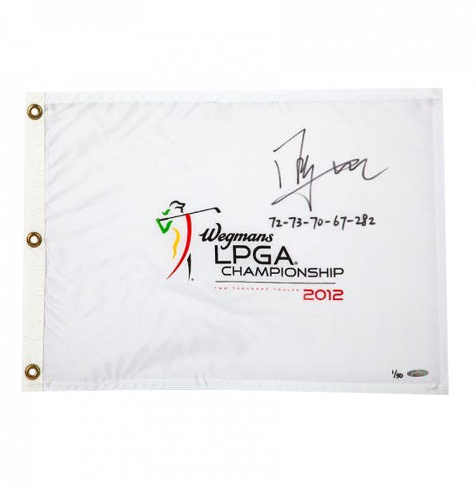 This 2012 LPGA Championship pin flag was personally signed by women's golf star Shanshan Feng during a private signing session organised and conducted by one of Icons.com most trusted partners, Upper Deck. The flag comes with an official Certificate of Authenticity, which serves as your proof that the signature on the item is genuine.