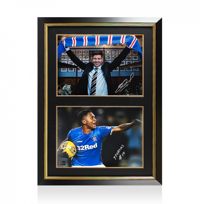 Steven Gerrard & Alfredo Morelos Signed Rangers FC Photos In Dual Photo Frame
