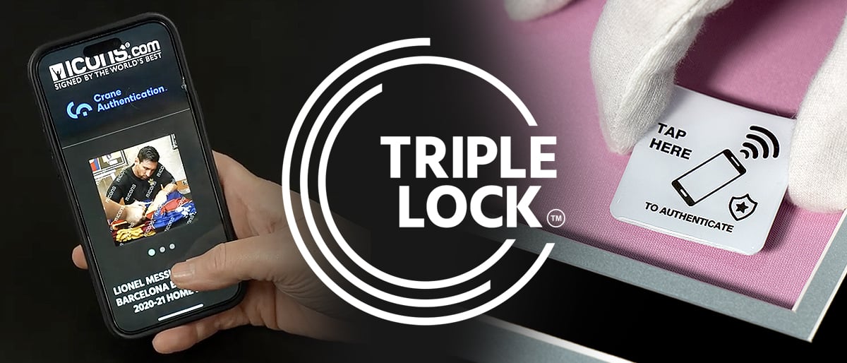 TripleLock™ is Icons' new market-leading system that revolutionises signed memorabilia authentication. TripleLock™ combines three cutting-edge technologies to guarantee the authenticity of every piece of TripleLocked memorabilia. With TripleLock™ technology, Icons is the first and only signed memorabilia company to provide an individual signing photo for each signed item as well as proof of the exact date and location from which every signature is obtained.